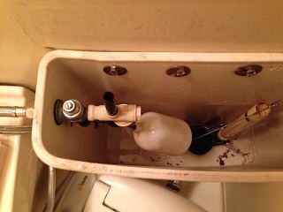 トイレタンクの手洗い管から水が出てこない、またタンクの水も溜まらないという症状でした。点検の結果、タンク内にある「ボールタップ」という部品が不良となり、このような症状が出ました。ボールタップ交換を行えば改善されるため、修理のご発注を頂きました。